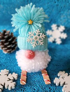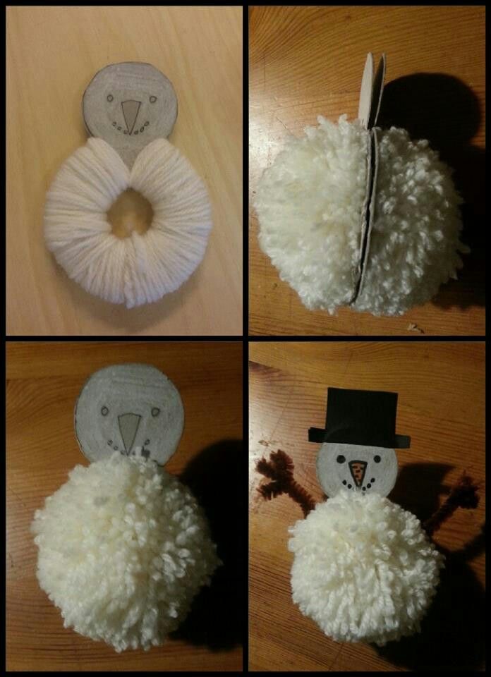 Bạn cũng có thể làm ngừi tuyết bằng sợi len, nguyên liệu chuẩn bị chỉ cần giấy bìa cứng, cuộn len, kéo, bút màu. Cắt giấy bìa cứng thành người người tuyết, vòng tròn thân cắt rỗng ở giữa rồi quấn sợi len quanh vòng tròn. Cuối cùng dùng kéo cắt còng tròn sợi đã quấn ra. Có thể vẽ hoặc trang trí tuỳ ý: mắt, mũi, miệng, nón… cho người tuyết.
