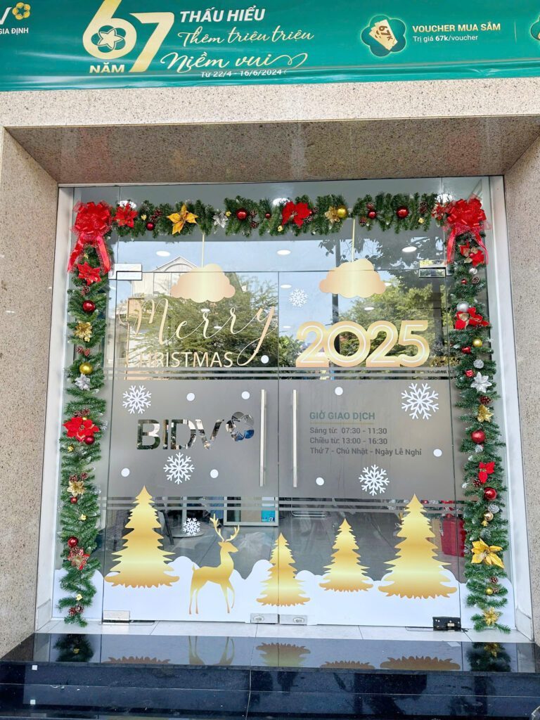 Trang trí Noel cửa kính văn phòng bằng giấy dán decal