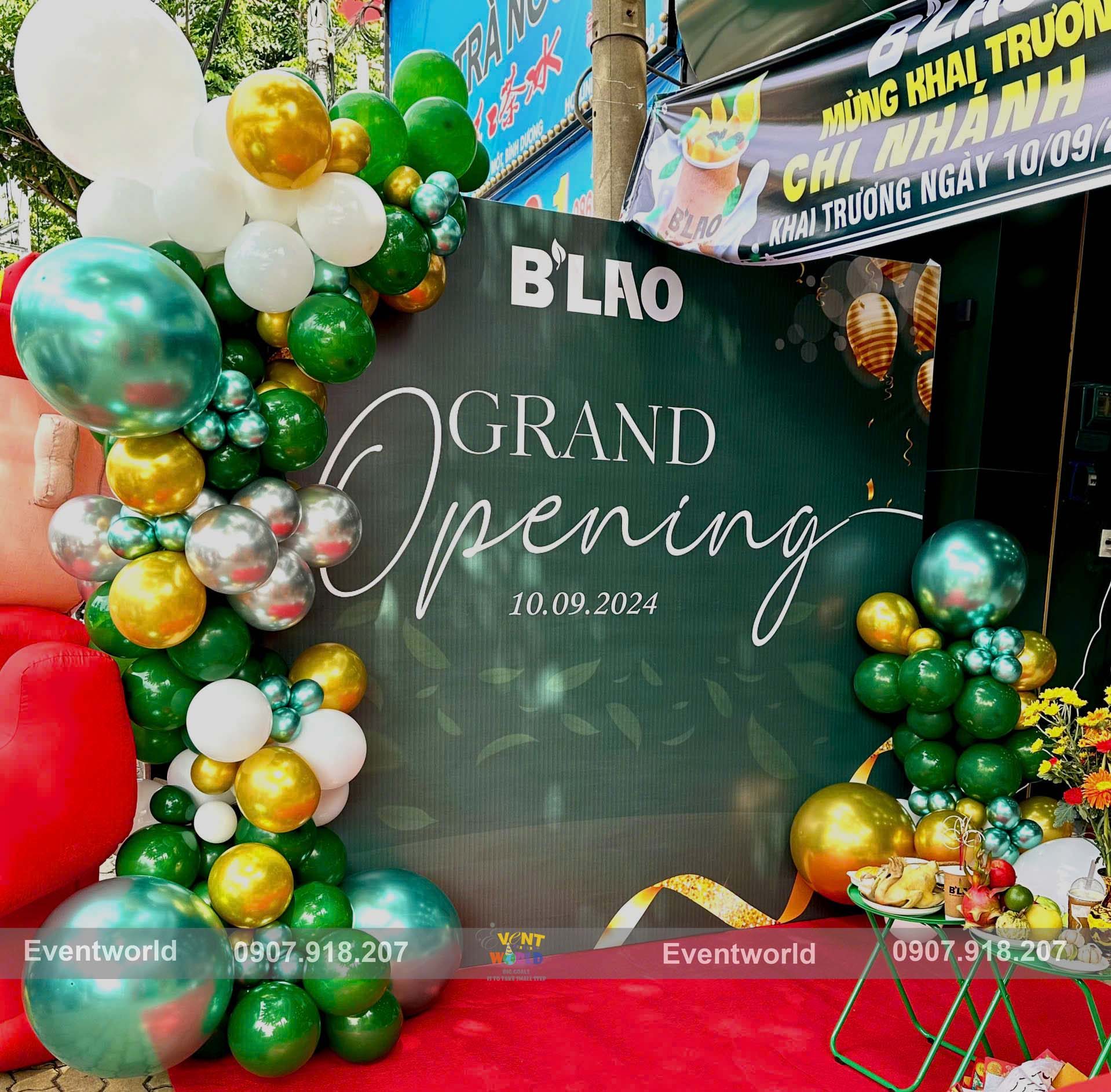 📸 Đừng quên in logo, slogan thương hiệu hoặc ngày khai trương lên backdrop nhé!