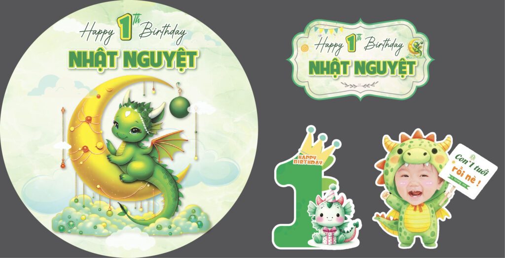 Backdrop sinh nhật bé Thiên Long chủ đề rồng xanh