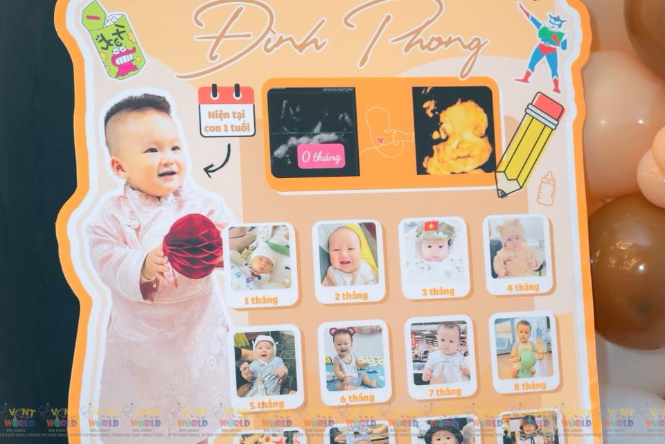 Backdrop không chỉ là điểm nhấn trang trí mà còn là khu vực check-in chính của bữa tiệc, nơi gia đình và khách mời lưu lại những khoảnh khắc đáng nhớ cùng bé đình phong trong ngày sinh nhật đầu tiên.