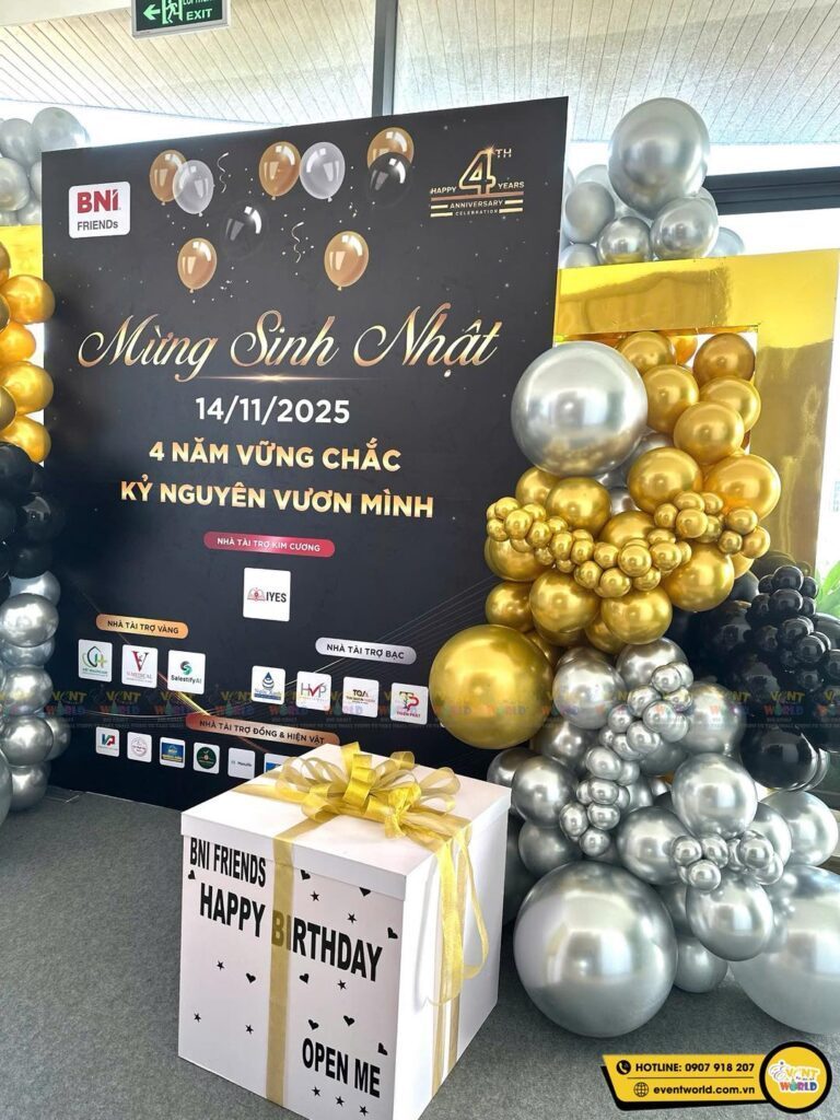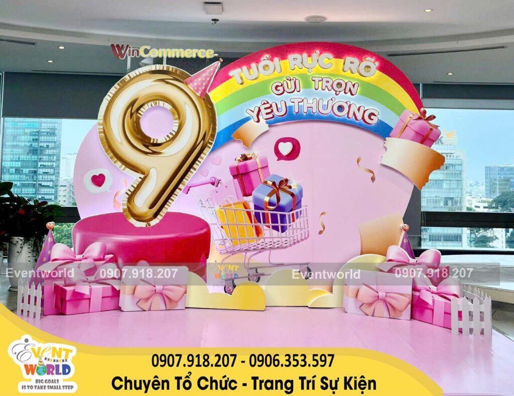 Eventworld chuyên cung cấp dịch vụ thiết kế và thi công backdrop sinh nhật doanh nghiệp với nhiều concept đa dạng từ sang trọng đến sáng tạo.